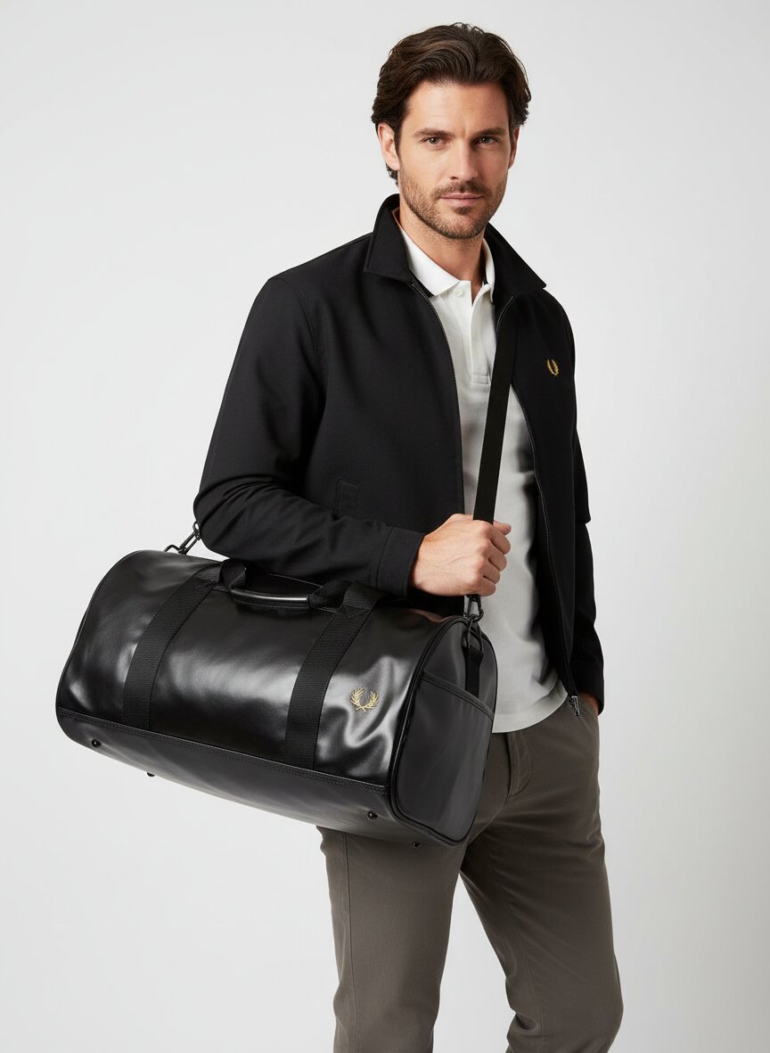 Das kompakte Format von 45 x 25 x 25 cm macht diese schwarze Sporttasche zum idealen Begleiter für Training oder Kurztrips. Die robuste Mikrofaser aus 100% Polyester ist pflegeleicht, wasserabweisend und behält dauerhaft ihre Form. Der längenverstellbare Schulterriemen und die stabilen Henkel ermöglichen flexibles Tragen – ob lässig über der Schulter oder klassisch in der Hand. Außentaschen mit Reißverschluss und seitliche Eingrifftaschen bieten schnellen Zugriff auf Smartphone, Schlüssel oder Trinkflasche. Fred Perry verbindet britische Sportgeschichte mit zeitlosem Design – der Lorbeerkranz steht seit 1952 für authentische Qualität.Unser Tipp: Die Tasche passt perfekt zu Trainingsanzug und Sneakern, funktioniert aber auch mit Jeans und Poloshirt für den sportlich-urbanen Look.