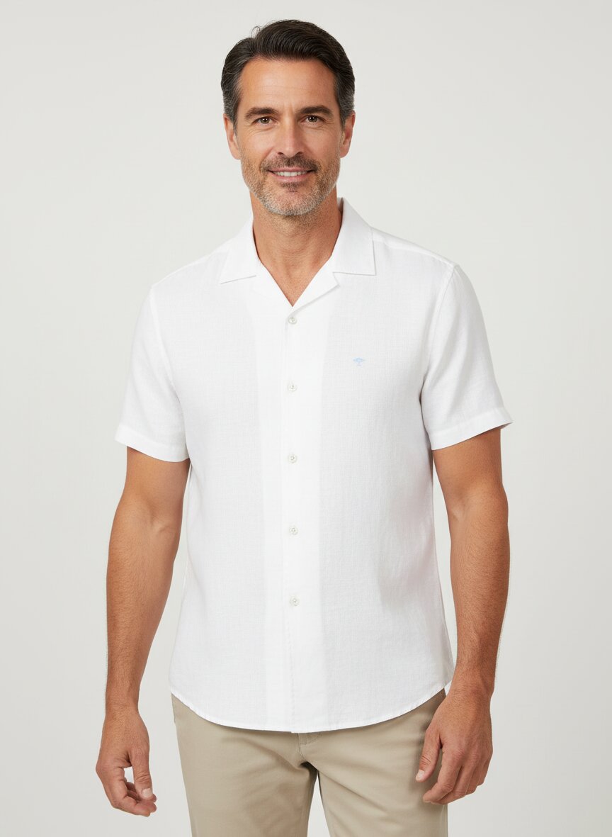 Fynch-Hatton, Kurzarmhemd, Reines Leinen, Revers, weiß