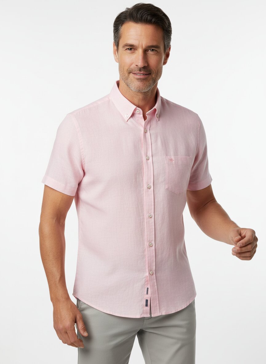 Fynch-Hatton, Kurzarmhemd, Reines Leinen, Button-Down, Brusttasche, magnolia