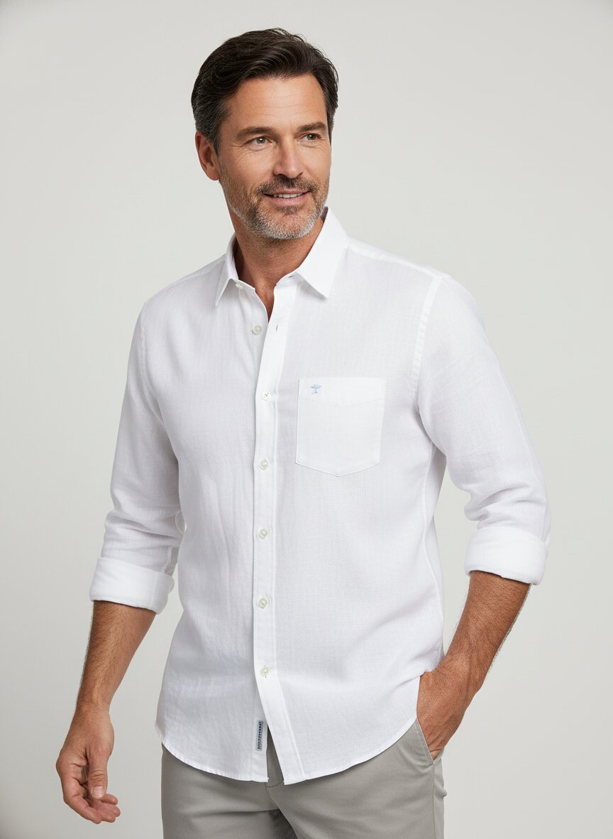 Das Hemd stammt von Fynch-Hatton, einer renommierten Marke für hochwertige Herrenhemden und Casual-Wear mit Fokus auf Qualität und klassisches Design.