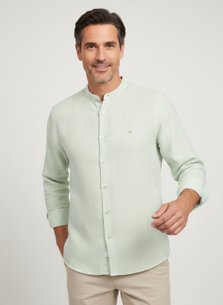 Fynch-Hatton, Hemd, Reines Leinen, Stehkragen, avocado gestreift