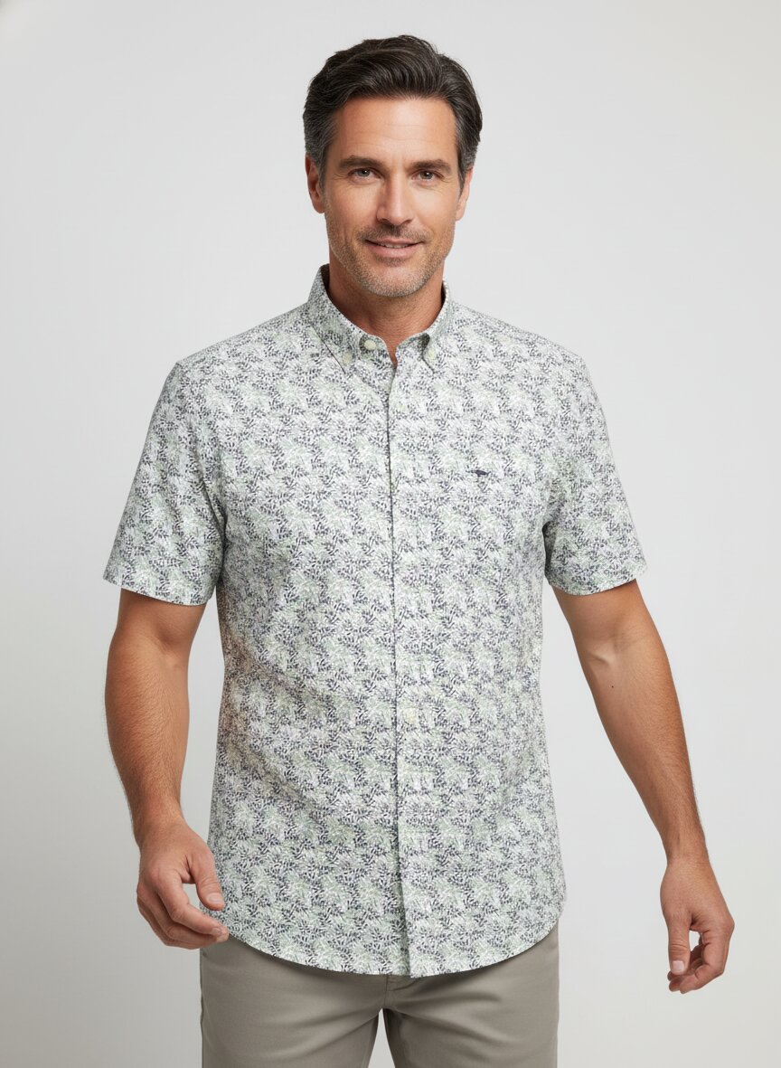 Fynch-Hatton, Kurzarmhemd, Baumwolle, Button-Down, Brusttasche, multicolor gemustert