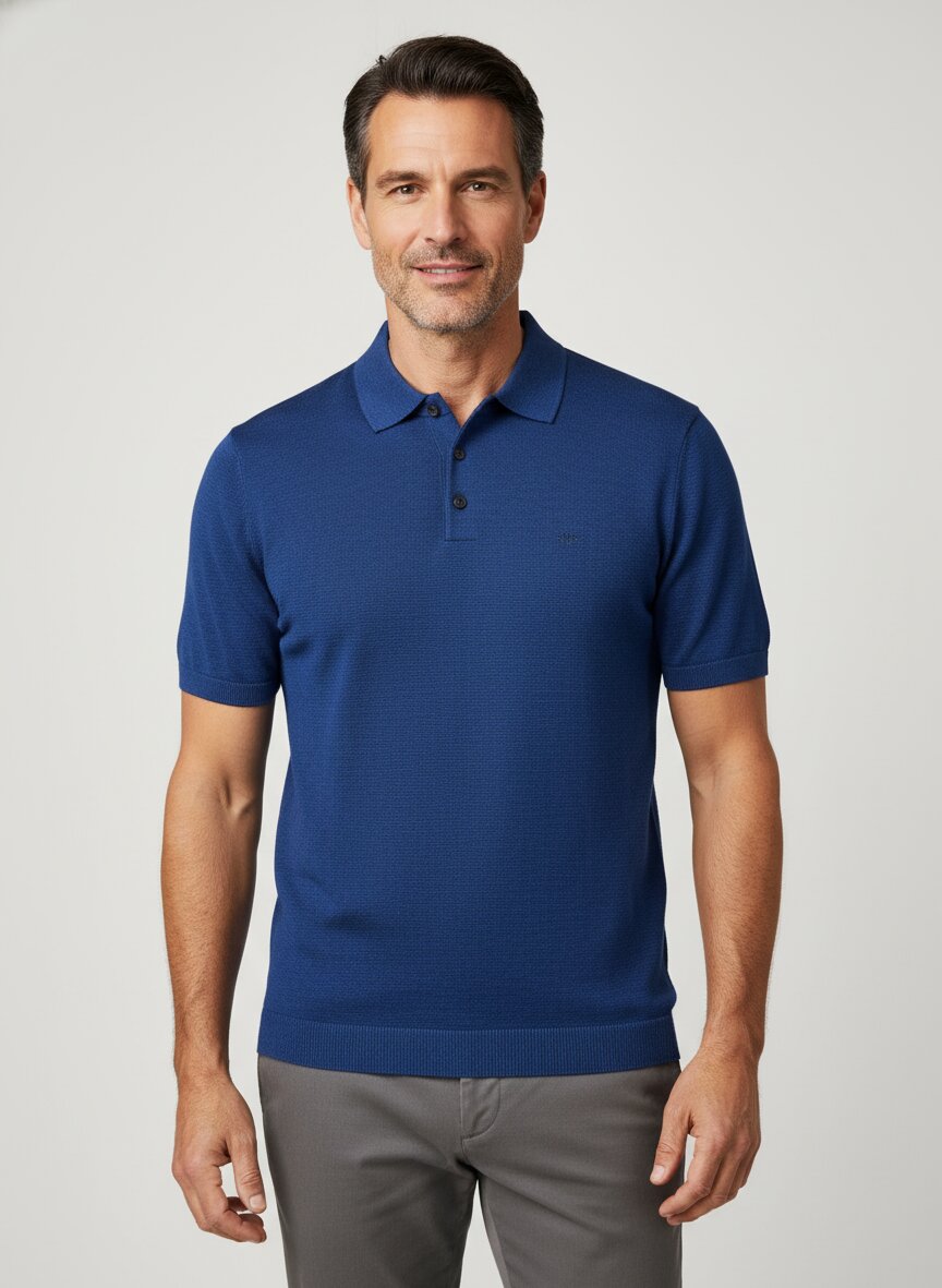 Das Polo-Shirt ist in Nachtblau erhältlich – eine klassische, vielseitige Farbe, die zu vielen Outfits passt. Es ist perfekt für Frühling und Sommer geeignet und lässt sich leicht kombinieren.