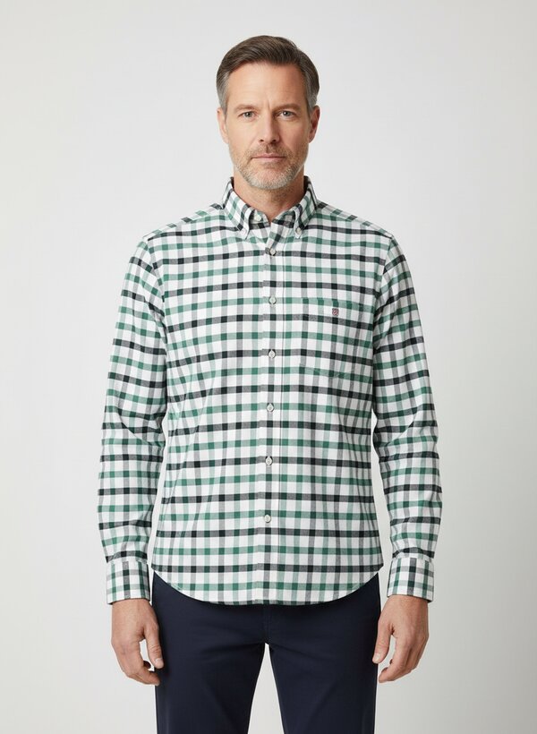 Das charakteristische Karomuster in Grüntönen verleiht diesem Hemd sofort den typischen Preppy-Charakter der GANT-Linie. Die robuste Baumwolloxford fühlt sich griffig an und gewinnt mit jeder Wäsche an Charakter, ohne dabei an Form zu verlieren. Der Button-Down-Kragen hält sich auch ohne Nadel perfekt in Position und schafft mühelos den Übergang vom Business ins Wochenende. Die weitenverstellbare Sportmanschette bietet Flexibilität im Alltag, während die Rückenfalte für optimale Bewegungsfreiheit sorgt. GANT verkörpert seit 1949 die sportlich-elegante Tradition der amerikanischen Ostküste – präzise Verarbeitung, zeitlose Schnitte und Materialien, die bewährt sind.Unser Tipp: Kombinieren Sie das Hemd mit einer dunklen Chino und Loafern für einen klassischen Look, oder tragen Sie es offen über einem weißen T-Shirt für entspannte Sommertage.