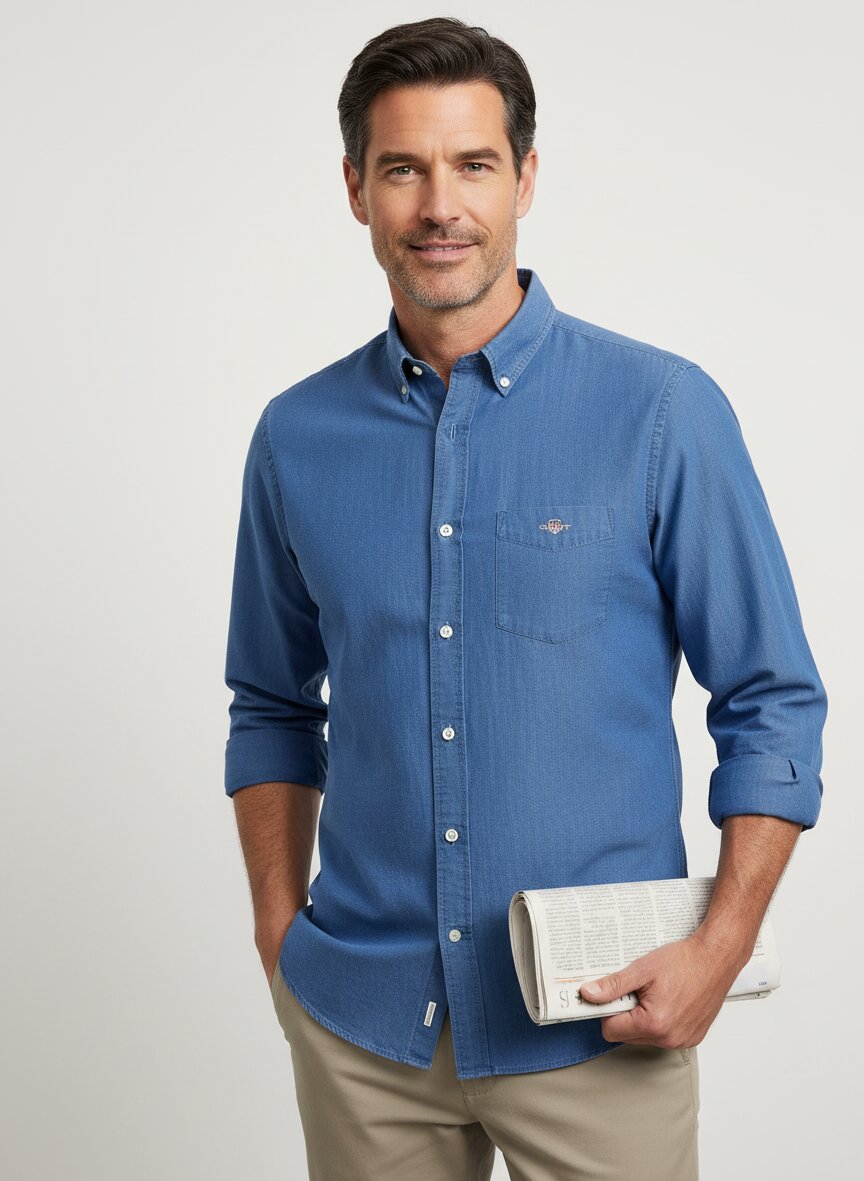 Gant, Hemd, Regular, Baumwolle, Button-Down, Brusttasche, jeansblau