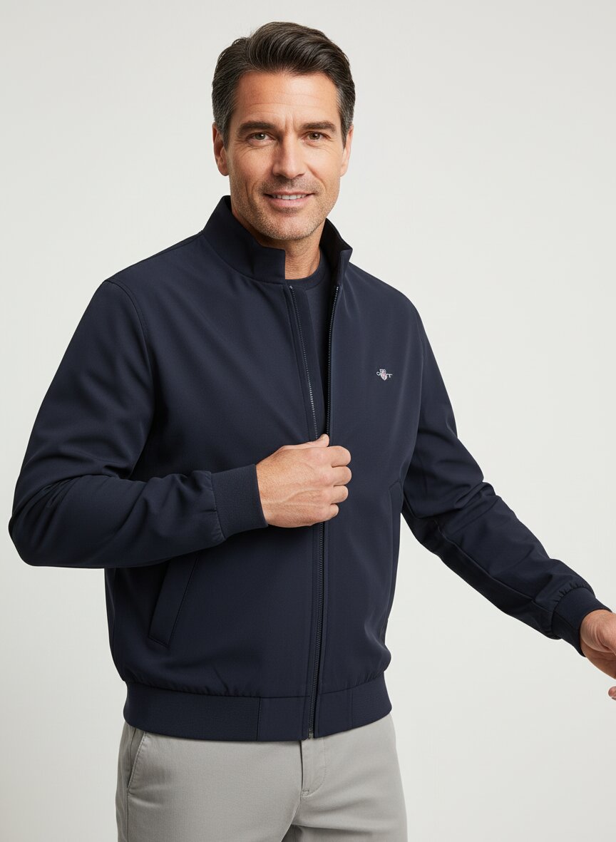 Diese nachtblaue Blouson ist perfekt für Frühling und Sommer geeignet und lässt sich vielseitig zu Casual- und Smart-Casual-Looks kombinieren.