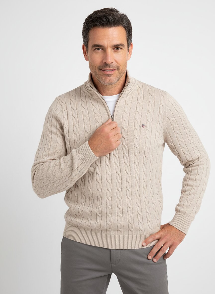 Baumwoll-Troyer mit charaktervollem Zopfmuster