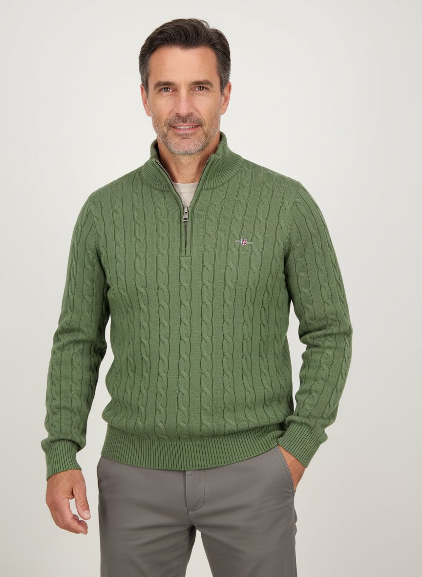 Baumwoll-Troyer mit charaktervollem Zopfmuster