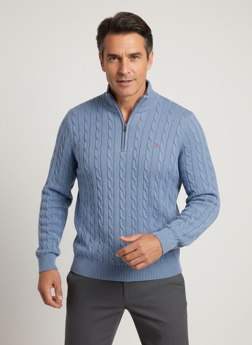 Baumwoll-Troyer mit charaktervollem Zopfmuster
