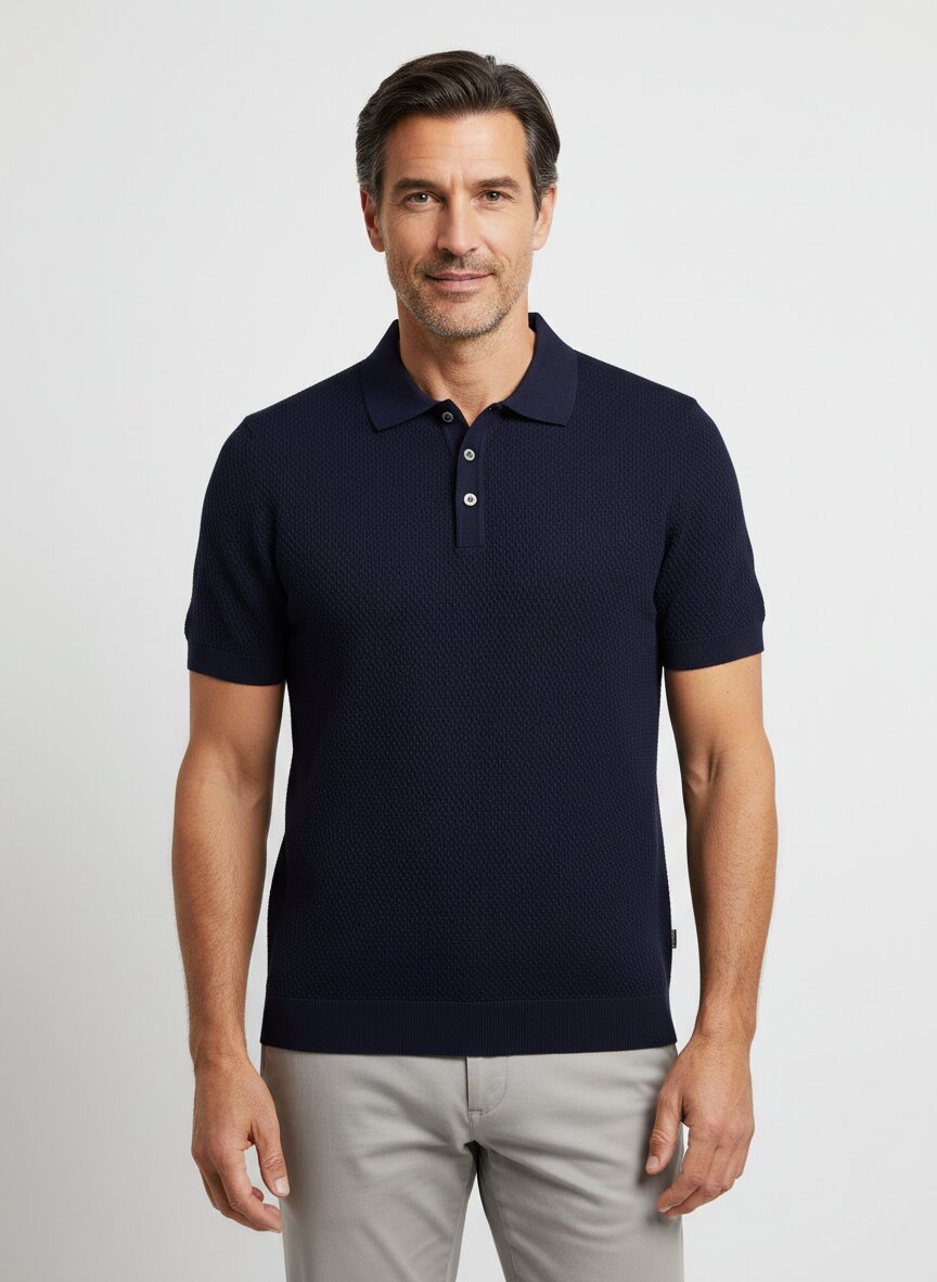 Klassisches Navy-Polo aus ägyptischer Baumwolle mit feiner Wabenstruktur