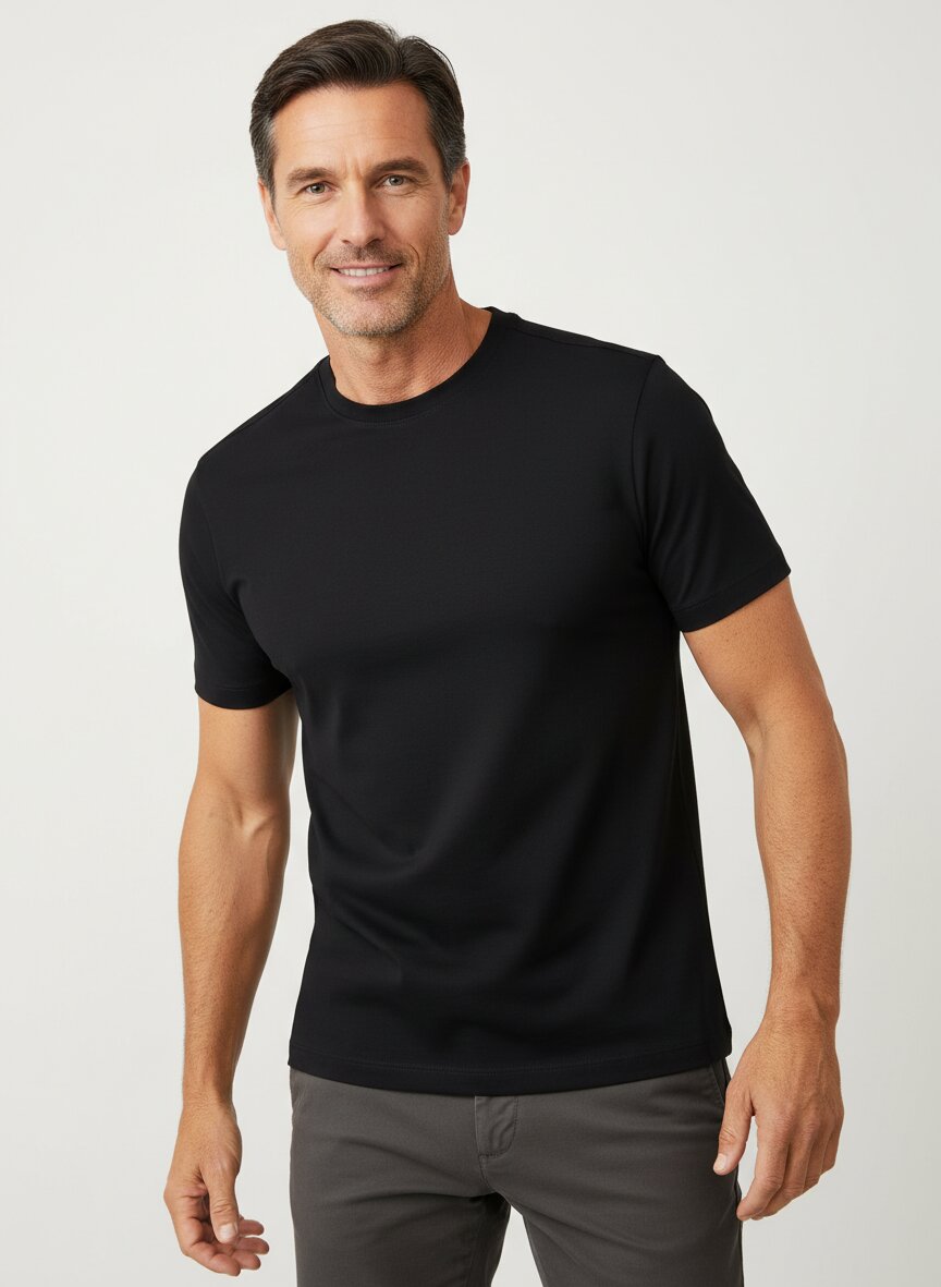 Das T-Shirt zeigt eine klassische, gerade geschnittene Silhouette mit Rundhalsausschnitt und kurzen Ärmeln. Es bietet eine zeitlose, vielseitig kombinierbare Passform für den alltäglichen Gebrauch.