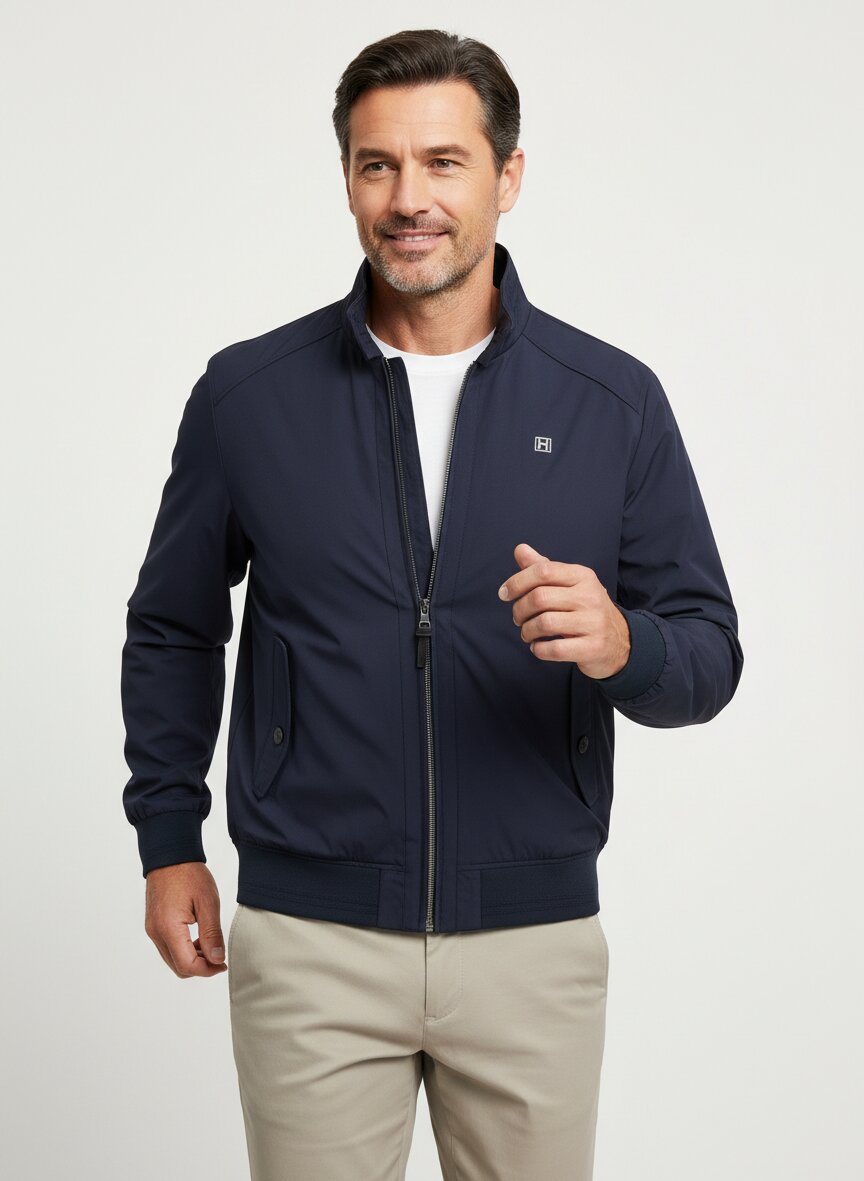 Navy Harrington mit klassischen Pattentaschen