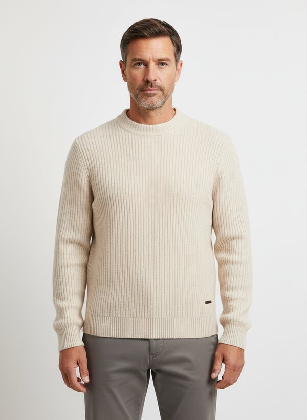 Beige Wollpullover mit kostbarem Kaschmir-Anteil