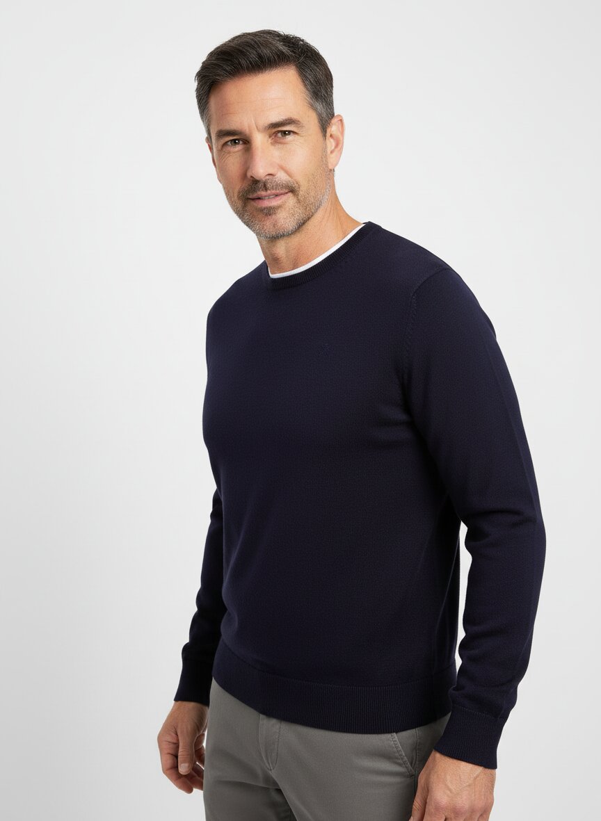 Der Pullover lässt sich vielseitig stylen: Tragen Sie ihn über einem weißen Hemd für den klassischen Oxford-Look oder solo mit einer Leinenhose für sommerliche Leichtigkeit. Das tiefe Marineblau passt perfekt zu Chinos, Jeans oder Anzughosen.