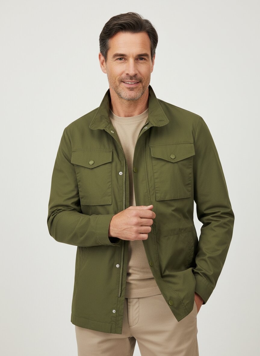 Das dichte Baumwollgewebe vermittelt sofort Substanz und Dauerhaftigkeit – ein Material, das mit den Jahren an Charakter gewinnt. Die Jacke sitzt mit moderner Schnittführung angenehm auf der Haut und bietet durch das reine Naturmaterial optimale Atmungsaktivität für warme Jahreszeiten. Der klassische Fieldjacket-Schnitt mit Stehkragen, durchgehendem Reißverschluss und Druckknopfblende funktioniert gleichermaßen im urbanen Alltag wie auf Reisen – zeitlos und praktisch. Aufgesetzte Brusttaschen und seitliche Leistentaschen bieten Stauraum, während die weitenregulierbare Taille eine individuelle Passform ermöglicht. HECHTER PARIS verbindet französische Eleganz mit funktionaler Sportlichkeit – seit 1962 der Beweis, dass Qualität und Understatement zusammenpassen.Unser Tipp: Kombinieren Sie die grüne Fieldjacket mit einer cremefarbenen Leinenhose und weißen Canvas-Sneakern für einen entspannten, aber durchdacht gestylten Frühjahrs-Look.