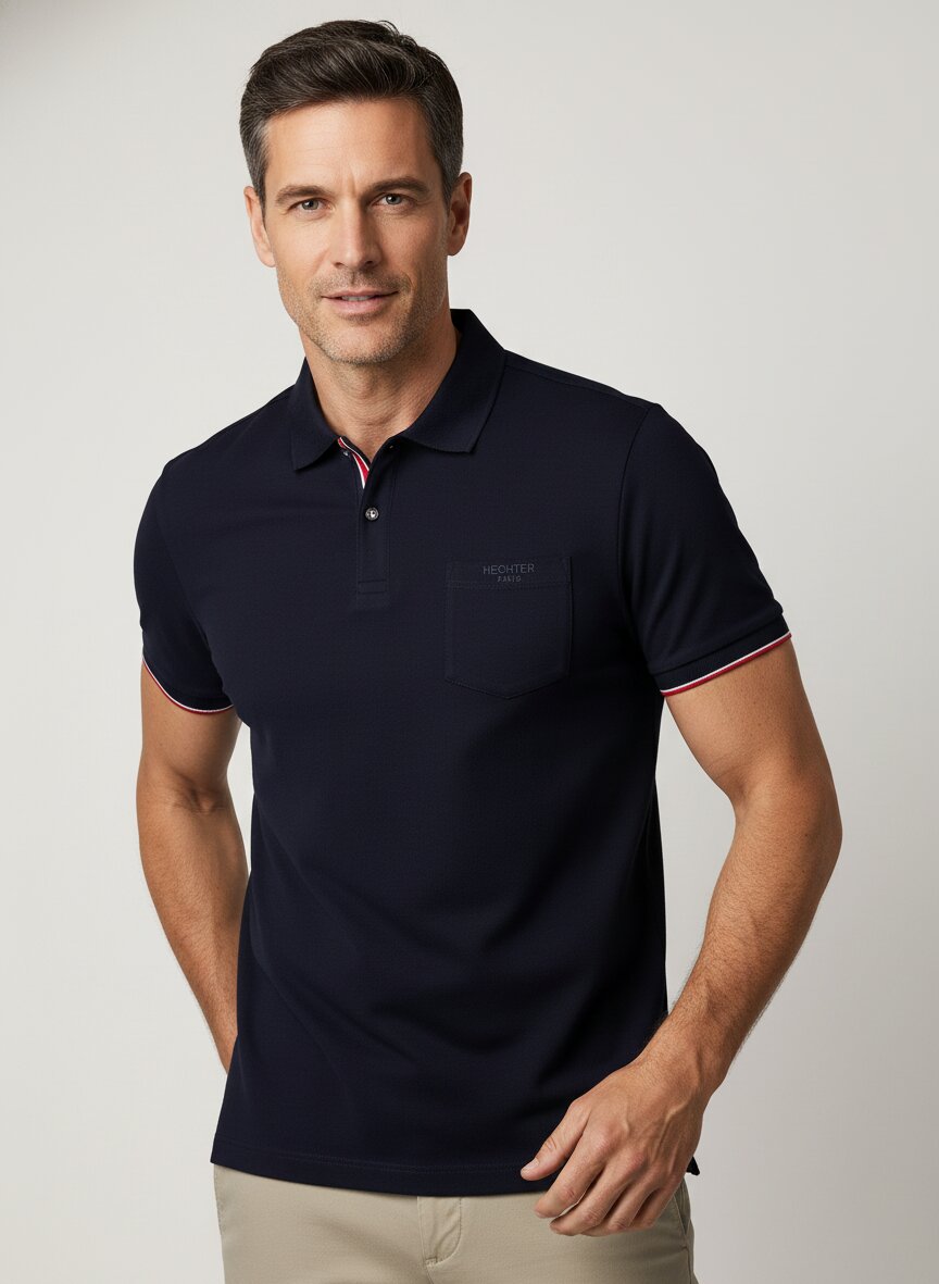 Das Polo-Shirt stammt von HECHTER PARIS, einer etablierten Marke für hochwertige Herrenmode mit klassischem europäischem Design.