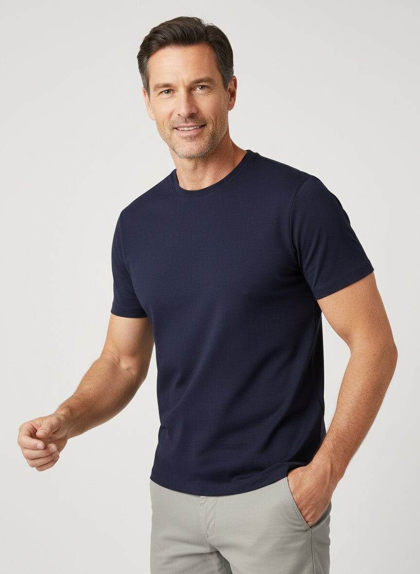 Das T-Shirt ist von HECHTER PARIS, einer etablierten Marke für hochwertige Herrenbekleidung mit Fokus auf Qualität und zeitlose Designs.
