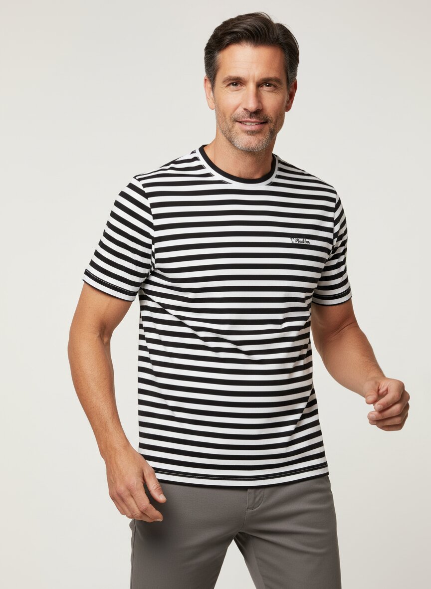 HECHTER PARIS, T-Shirt, Bauwolle, schwarz-weiß gestreift