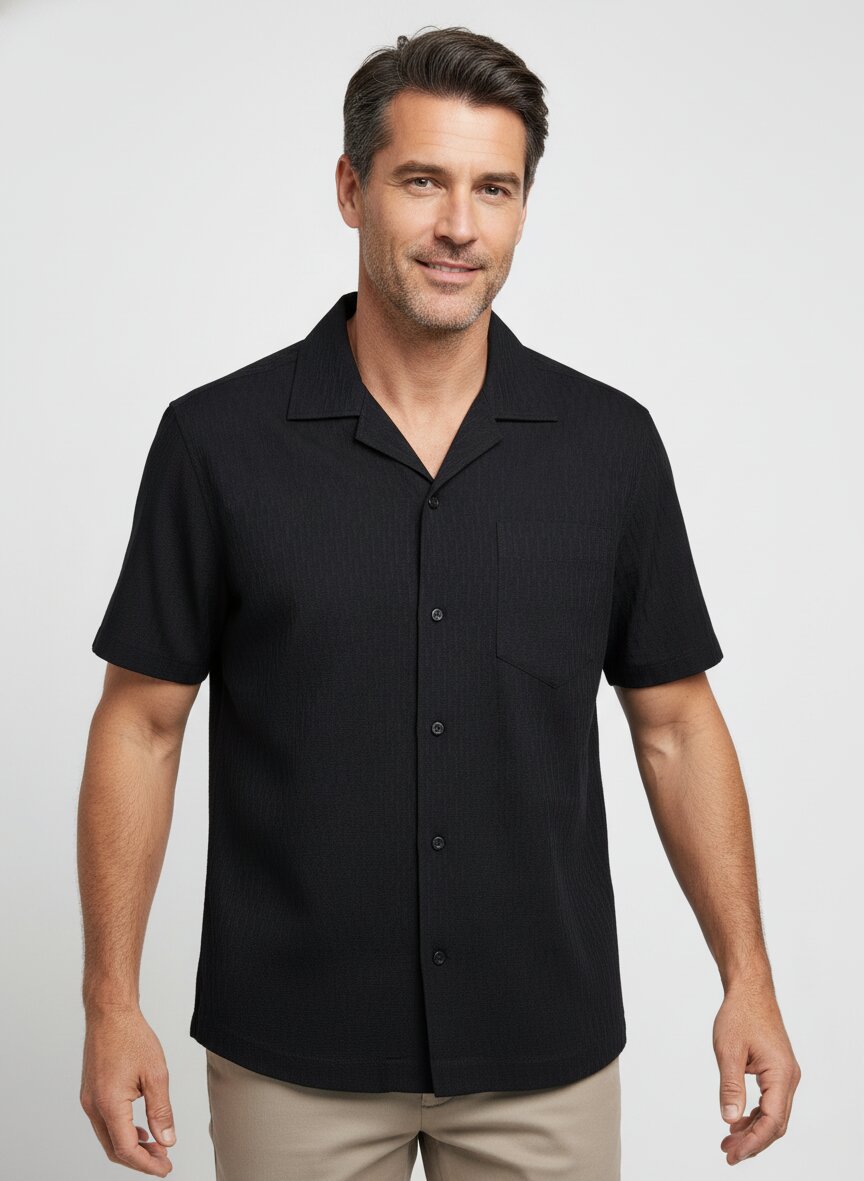 HUGO, Kurzarmhemd Exolino, Baumwolle, Revers, Brusttasche, schwarz