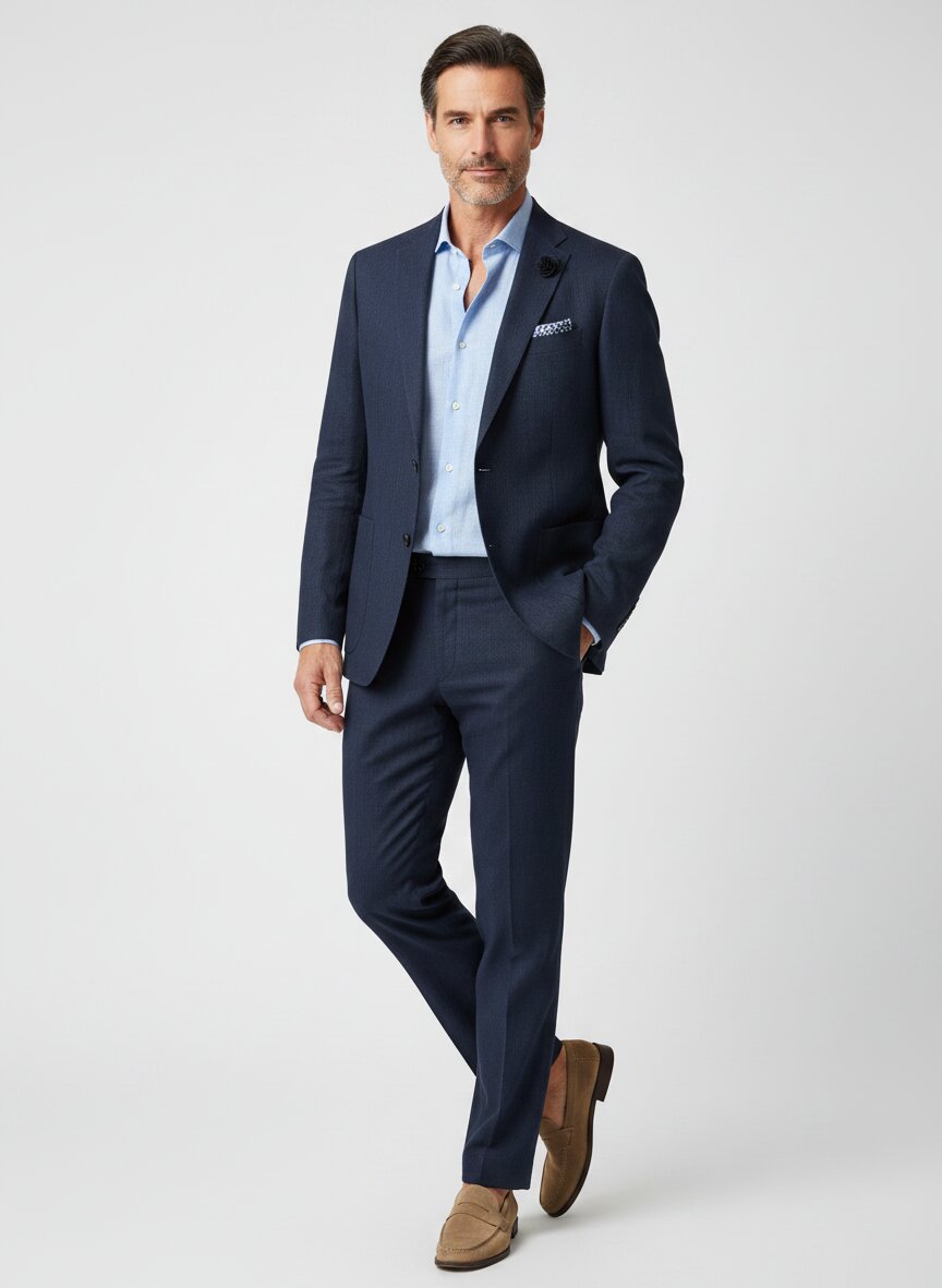 Nein, dieser Anzug ist ungefüttert. Das macht ihn besonders leicht und atmungsaktiv – perfekt für warme Jahreszeiten.