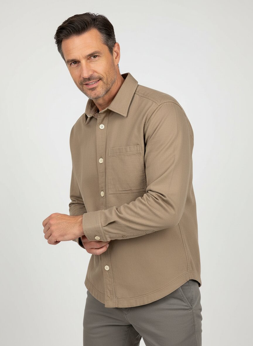 Das Modell Hadi besticht durch seinen dezenten Braunton und die präzise verarbeiteten Details – Kentkragen, Brusttasche und seitliche Eingrifftaschen schaffen eine klare Silhouette. Die reine Baumwolle liegt angenehm auf der Haut, atmet zuverlässig und entwickelt mit der Zeit eine natürliche Patina, die dem Material Charakter verleiht. Als Overshirt funktioniert es mühelos über T-Shirts oder leichten Pullovern und passt gleichermaßen in den Urban-Alltag wie in entspannte Wochenend-Szenen. Die Sportmanschetten sorgen für praktische Bewegungsfreiheit, während der Kent-Kragen dem Ganzen eine subtile Eleganz gibt. JOOP! verbindet deutsche Designpräzision mit urbanem Selbstverständnis – klare Linien, hochwertige Materialien und eine Haltung, die sich nicht verbiegt.Unser Tipp: Tragen Sie das Overshirt offen über einem weißen oder cremefarbenen Basic-Shirt und kombinieren Sie es mit einer Navy-Chino für einen zeitlosen Layering-Look, der Frühling und Sommer gleichermaßen meistert.
