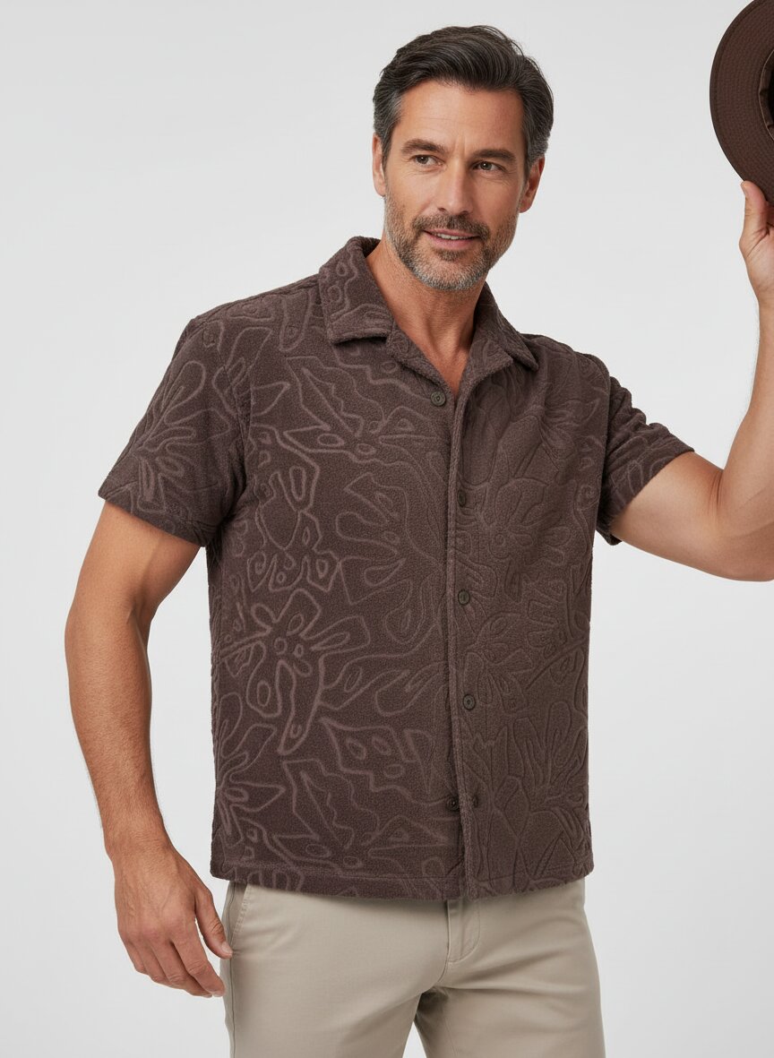 Frottee ist eine strukturierte, weiche Stoffart, die atmungsaktiv ist und sich angenehm auf der Haut anfühlt. Das Material ist ideal für Frühjahr und Sommer geeignet.