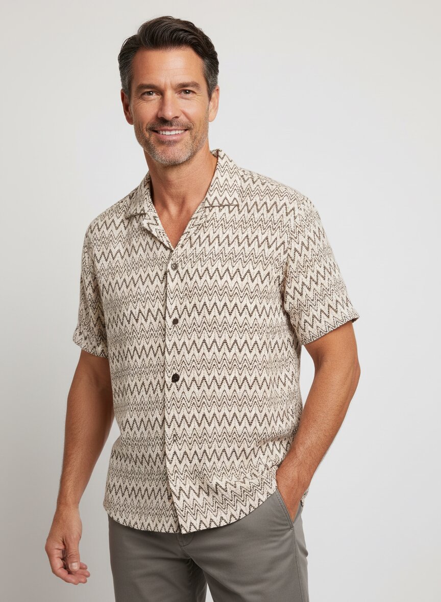 Das Hemd hat eine klassische, komfortable Passform und ist als Kurzarmhemd perfekt für Frühling und Sommer geeignet. Für die genaue Größenauswahl empfehlen wir, die Größentabelle zu konsultieren.