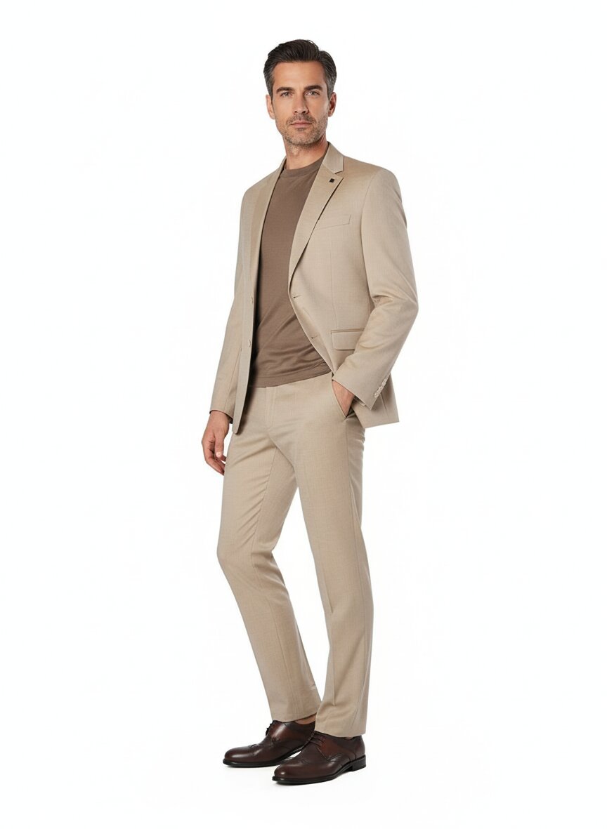 Beige Melange aus Schurwolle und Viskose mit elastischem Komfort