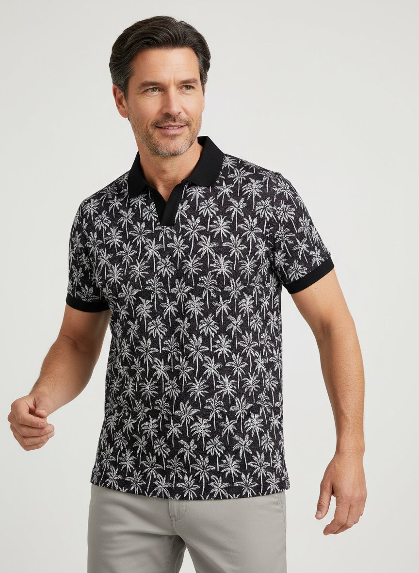 Schwarz-weiß gemustertes Polo mit raffinierter Blendenlösung