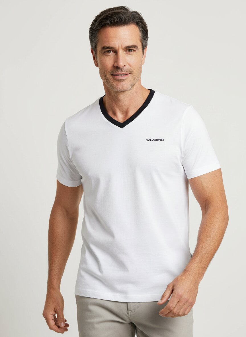 KARL LAGERFELD steht für hochwertige, designorientierte Basics mit durchdachten Details wie dem charakteristischen Kontrast-V-Ausschnitt dieses Modells.
