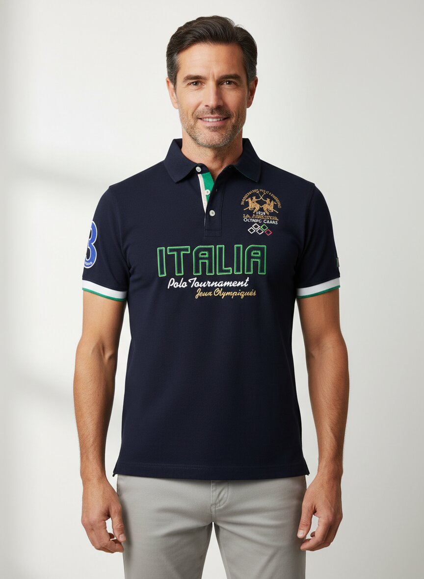 Polo-Shirt mit erhabenen Strickereien und Patches auf der Brust und Ärmeln von LA MARTINA