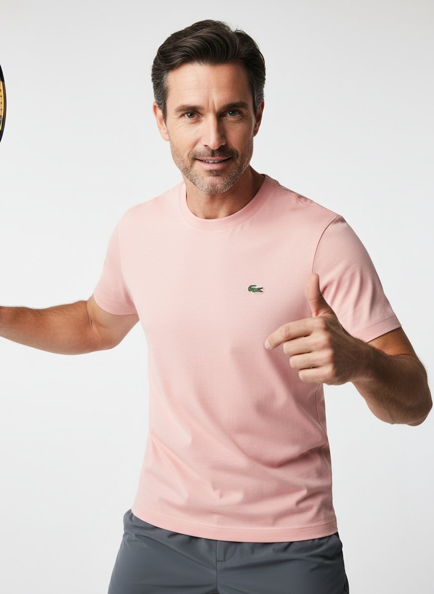 Dieses T-Shirt besticht durch sein weiches, zartes Rosa – eine Farbe, die zwischen Klassik und modernem Understatement schwebt. Die hochwertige 100%-Baumwolle liegt angenehm auf der Haut, atmet natürlich und behält ihre Form über viele Wäschen hinweg. Der Rundhals-Ausschnitt mit verstärktem Nackenband sorgt für Langlebigkeit und sitzt perfekt beim alltäglichen Tragen. Im Classic Fit geschnitten, bietet das Shirt ausreichend Bewegungsfreiheit ohne zu weit zu fallen – ideal für Business-Casual bis Freizeit. Seit 1933 verkörpert Lacoste die französische Sporteleganz eines Tennischampions: zeitlos, präzise und ohne unnötige Schnörkel.Unser Tipp: Kombinieren Sie das rosafarbene Shirt mit einer marineblauen Leinenhose und weißen Sneakern für einen eleganten Frühjahrs-Look.