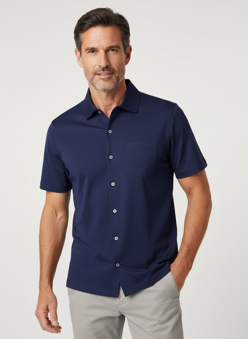 Kurzarmhemd aus mercerisierter Baumwolle in Jersey Qualität mit Polo-Kragen