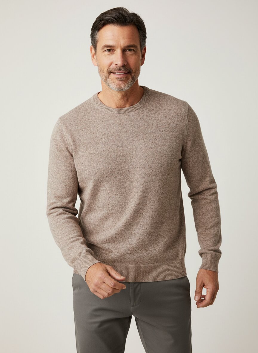 Der klassische Rundhals-Ausschnitt macht ihn zum vielseitigen Begleiter für Business-Casual ebenso wie für entspannte Wochenend-Outfits. Er eignet sich sowohl für das Büro als auch für freizeitliche Kombinationen.