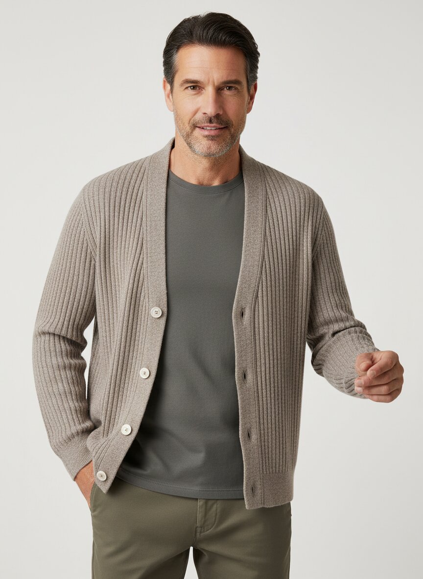 Hellbraun melierter Cardigan aus Baumwolle und Leinen
