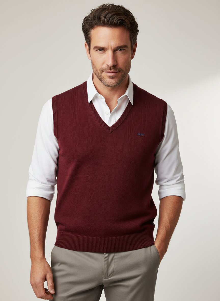 Der tiefe Lilaton verleiht diesem Pullunder eine elegante Ausstrahlung, die sich mühelos zwischen Business und Freizeit bewegt. Die feine Merinowolle fühlt sich weich auf der Haut an und reguliert die Temperatur – ideal für klimatisierte Büros oder kühlere Herbstabende. Der klassische V-Ausschnitt macht den Pullunder zum vielseitigen Layering-Piece, das sowohl über Hemden als auch über feinen Rollkragenpullovern funktioniert. Die pflegeleichte Waschbarkeit der hochwertigen Wolle vereint Luxus mit Alltagstauglichkeit. MAERZ München steht seit 1920 für bayerische Strickkunst, bei der traditionelles Handwerk auf moderne Eleganz trifft – gefertigt in Europa mit über 100 Jahren Expertise. Dieser Pullunder eignet sich besonders für die Übergangszeit, wenn morgens noch Kühle herrscht und mittags die Sonne wärmt.Unser Tipp: Tragen Sie den Pullunder über einem weißen Hemd zur dunkelblauen Chino für einen gepflegten Business-Casual-Look.