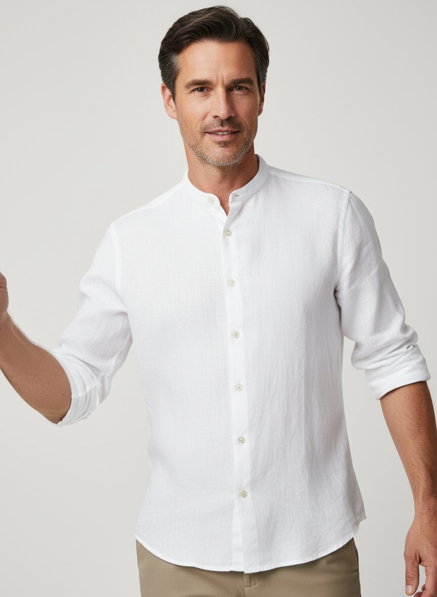 Marc O'Polo, Hemd, Regular, Reines Leinen, Stehkragen, weiß