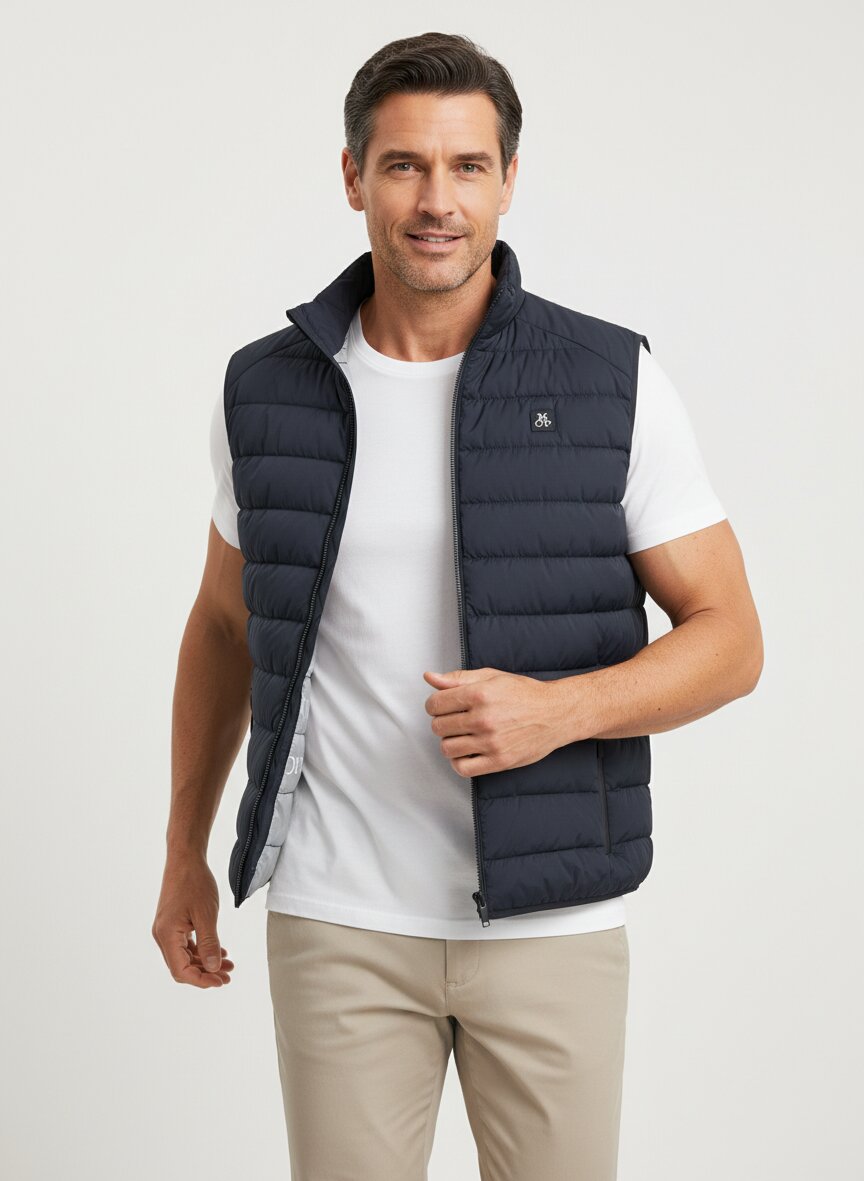Steppweste in tiefem Marineblau aus recycelter Mikrofaser