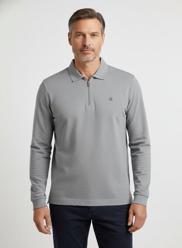 Klassisches Zip-Polo in warmem Grau mit feinem Jersey