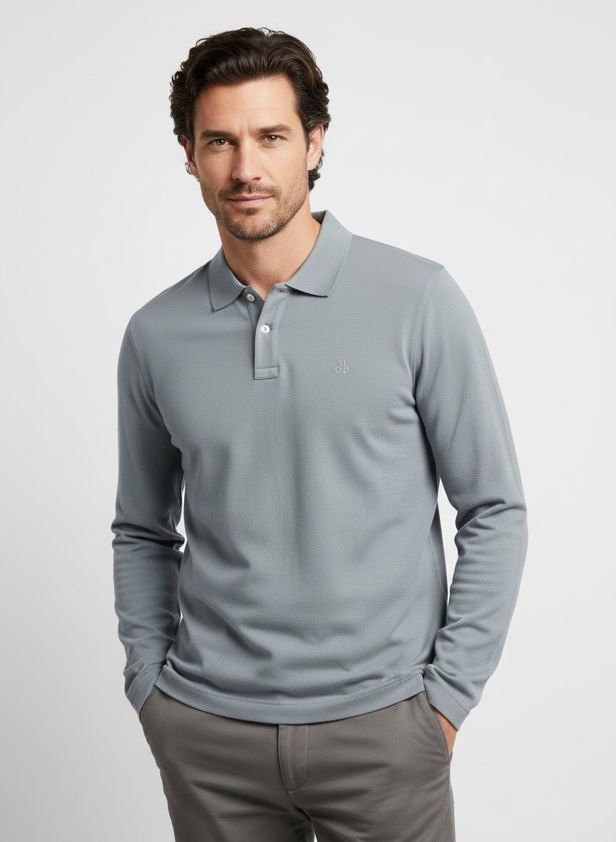 Dieses klassische Polo-Shirt besticht durch seine schlichte, elegante Graunuance und den griffigen Strick aus reiner Bio-Baumwolle. Der weiche, atmungsaktive Stoff schmiegt sich angenehm an den Körper und bietet höchsten Tragekomfort für den Alltag – ohne kratzig zu wirken oder an Form zu verlieren. Die durchgehende Knopfleiste ermöglicht flexible Styling-Optionen, während der Regular Fit eine zeitlose, nicht taillierte Silhouette schafft. Mit der klassischen Polokragen-Konstruktion und den charakteristischen Schulternähten entsteht ein Piece, das mühelos zwischen Freizeit und Smart Casual wechselt.