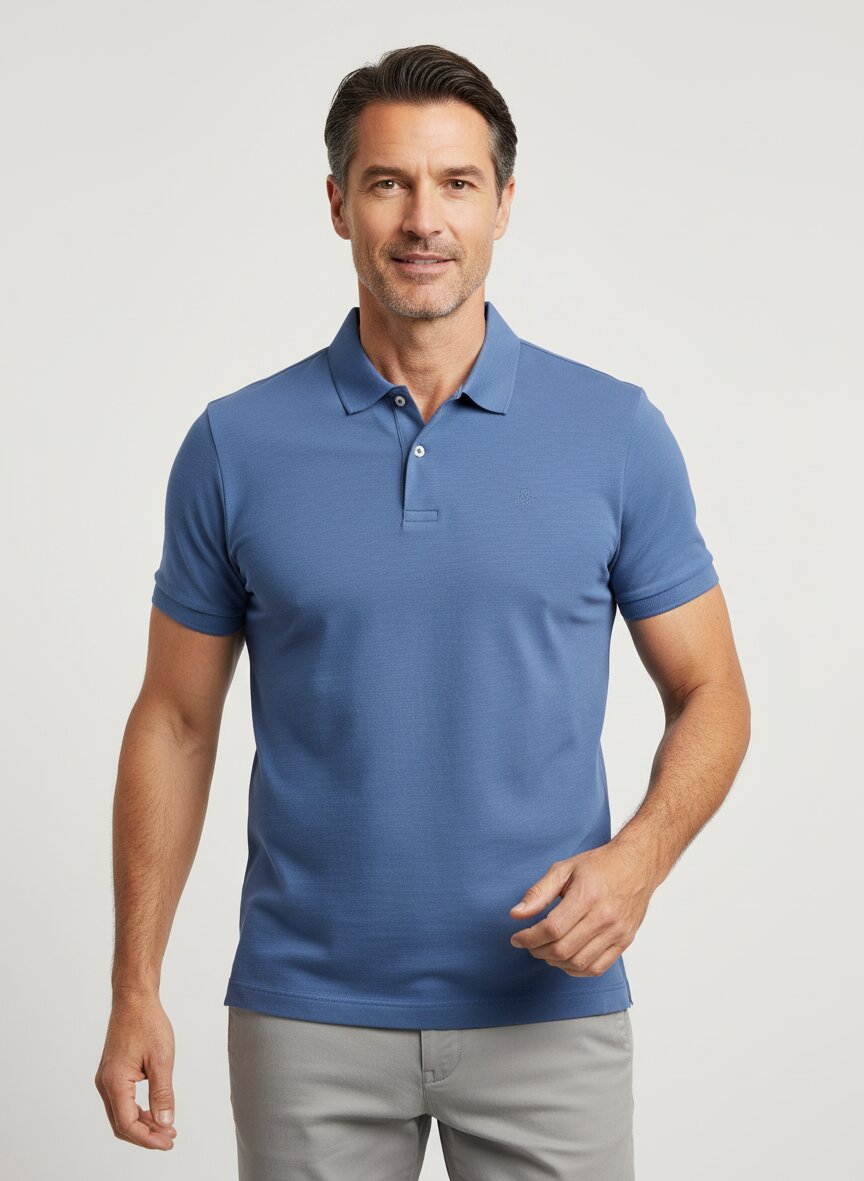 Polo-Shirt aus effektvollem, weichem Flammgarn in strukturierter, leichter Qualität