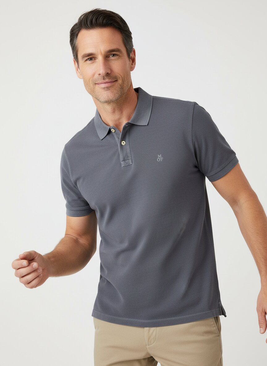 Grau in Used-Optik – Piqué-Polo mit authentischer Patina