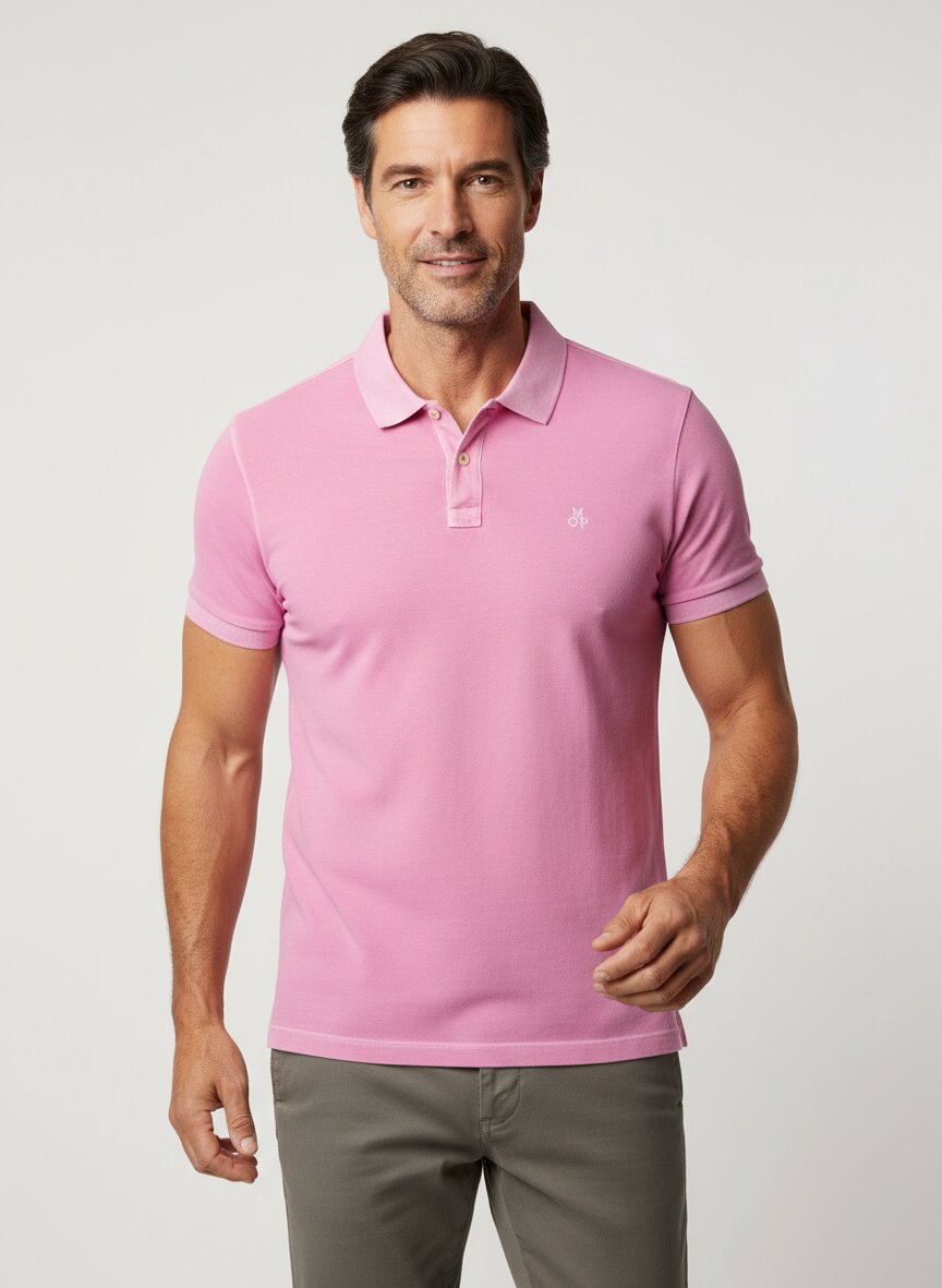 Rosa Piqué-Polo mit charakteristischer Used-Optik