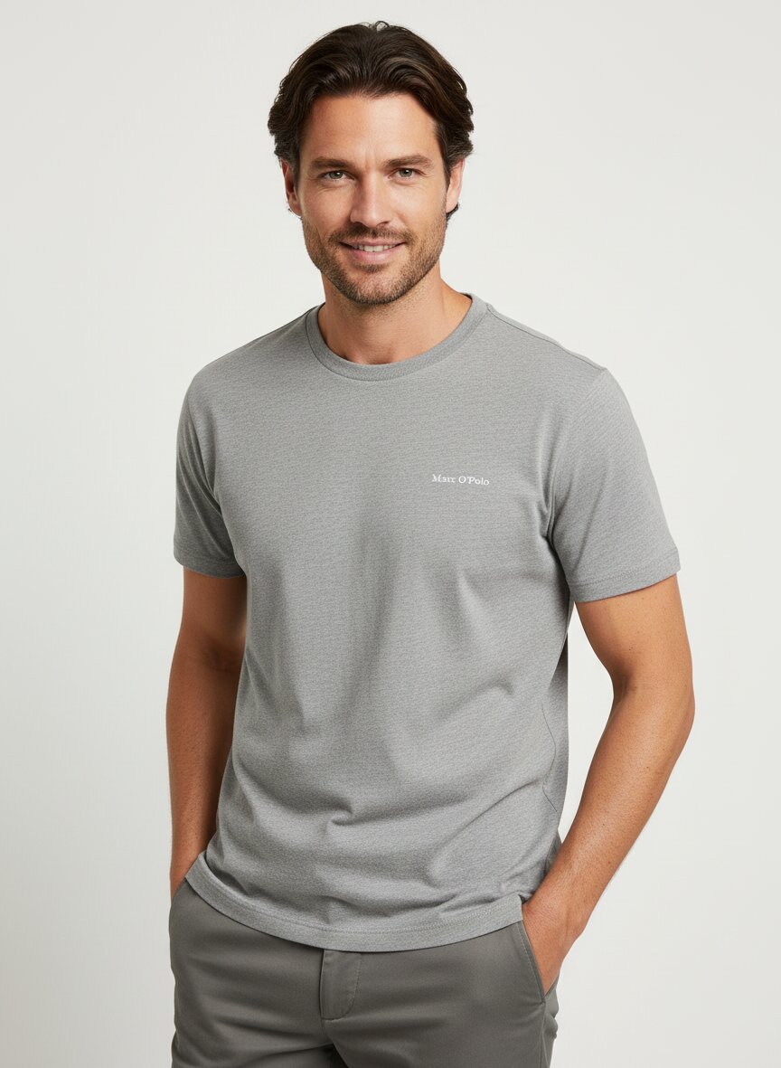 Das grau melierte T-Shirt besticht durch seinen schweren Bio Baumwoll-Jersey, der einen angenehmen Griff und eine hochwertige Optik bietet. Die weiche, atmungsaktive Baumwolle sorgt für ein komfortables Tragegefühl und ist ideal für den täglichen Einsatz. Mit seinem relaxed Fit und dem Rippenstrick am Rundhalsausschnitt verleiht es jedem Outfit eine lässige Note. Die sorgfältige Verarbeitung zeigt sich in den Details wie der präzisen Nahtführung. Marc O'Polo steht seit 1967 für skandinavischen Minimalismus und setzt auf natürliche Materialien für einen authentischen Casual-Luxus.Unser Tipp: Kombinieren Sie das T-Shirt mit einer dunklen Jeans und einem Strickcardigan für einen entspannten Herbst-Look.