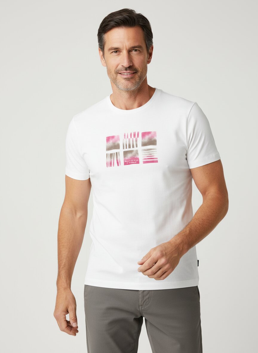 Das T-Shirt ist von Marc O'Polo, einer renommierten deutschen Marke, die für hochwertige und zeitlose Mensfashion bekannt ist.