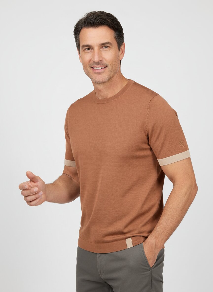 Das T-Shirt stammt von MOS MOSH Gallery., einer dänischen Marke, die für hochwertige und zeitlose Herrenmode bekannt ist.