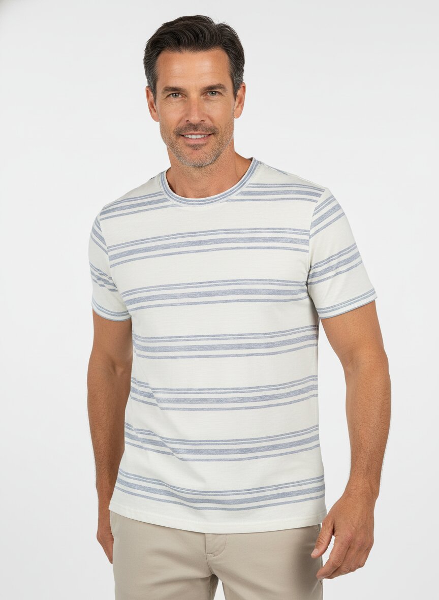 MUSTANG, T-Shirt Austin, Baumwolle, perlmutt-blau gestreift