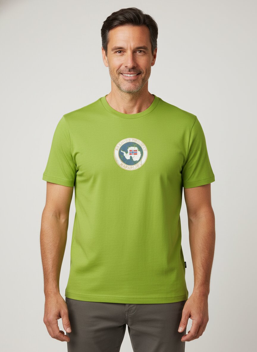 Das T-Shirt stammt von NAPAPIJRI, einer bekannten Marke für hochwertige Outdoor- und Casual-Bekleidung.