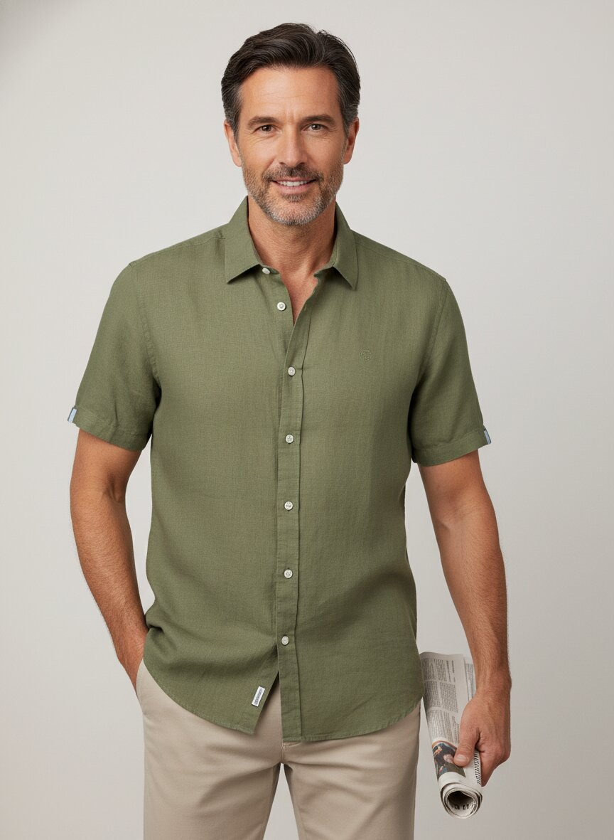 NORTH SAILS, Kurzarmhemd, Reines Leinen, Kent, dunkelgrün