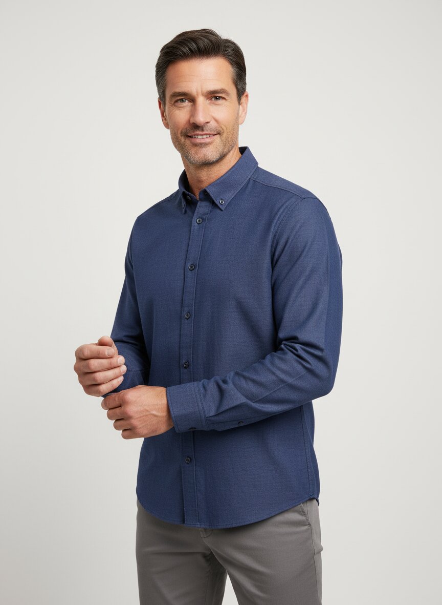 Das Hemd verfügt über einen Button-Down-Kragen, Sportmanschetten und eine durchdachte Rückenfalte, die für perfekten Sitz auch bei Bewegung sorgt. Diese Details machen es zu einem zuverlässigen Begleiter im Alltag.